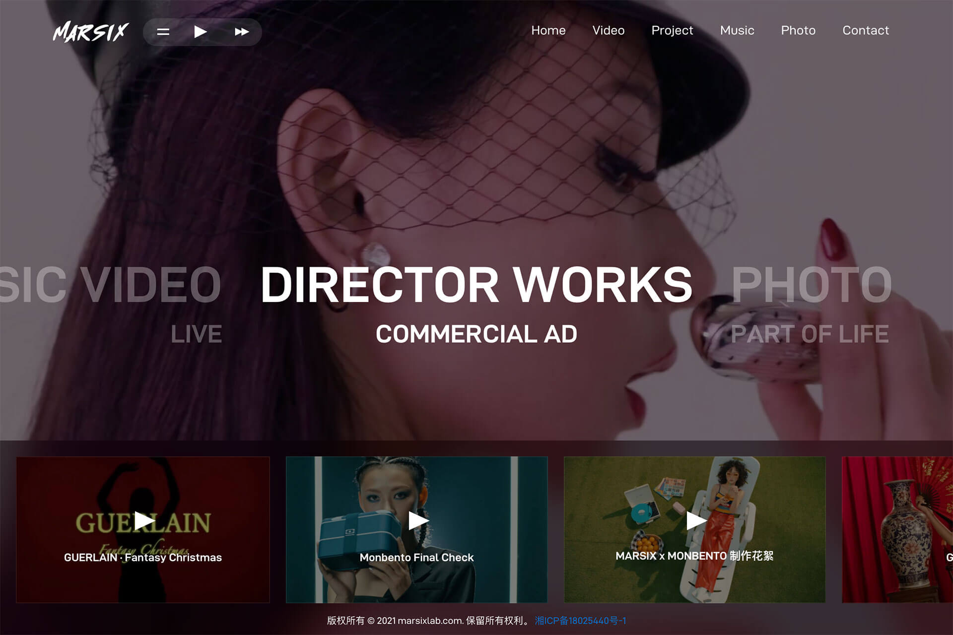MARSIX PERSONAL WEBSITEOVERVIEW / DATE: 2018-12-01MARSIX 是一名导演,独立音乐人。他不仅创作了很多音乐作品,还承接一些影视、广告项目。随着时间累积,作品案例越来越多,而没有一个展示的平台让其客户很难了解他,因此他找到了我为他打造一个展现他作品的平台能更好的展示自己的生活及创作点滴。打造音乐人个人网站,尤为重要的是其新颖的展现方式,让浏览者耳目一新。这一项目我充分运用了“动态”细节在作品展示上更加生动,充满代入感。